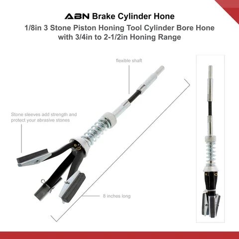 - [Easier Brake Repair]: Remove carbon, rust, and heat glaze deposits from caliper and piston cylinder walls with ABN Brake Honing Tool; Paired with your electric drill, lubricate with brake fluid and run low speeds moving up and down engine cylinder sides