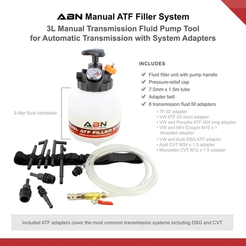 - SAVE MONEY ON TRANSMISSION SERVICE WORK: Checking and changing your transmission fluid keeps your automatic transmission lubricated and running smoothly and it helps to avoid wear on your clutches; But going to a mechanic can cost up to a few hundred for a transmission fluid change; Skip the hassle by changing the transmission fluid yourself with the ABN 3L Manual ATF Fluid Pump Automotive Fluid Transfer Pump Fluid Dispensing System