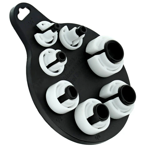 - EASY STORAGE: Storage plate with simple transportation, safe storage, and quick organization; Each holder peg on plate includes easy-to-read size markings for fast identification