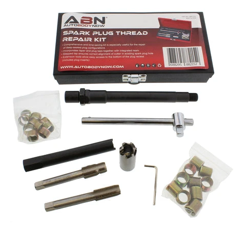 - REPAIR DEEP-SEATED PLUGS: The ABN Spark Plug Thread Repair Rethreading Set, 14mm Metric – Rethreading Tool Kit is a comprehensive and time-saving kit that incorporates taper and lug taps together with integrated ream to allow you to fix a stripped spark plug threaded port and repair deep-seated plug configurations