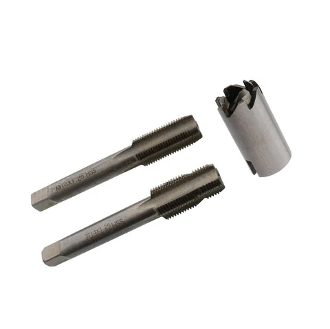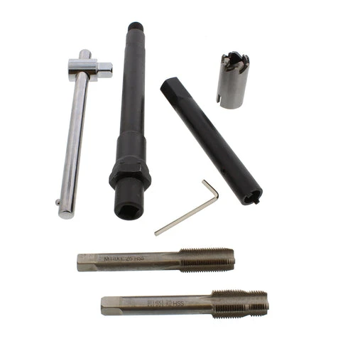 - VARIOUS APPLICATIONS: High-speed steel (HSS) ST14x1.25 M14x1.25 (14mm thread size) suitable for damaged spark plug threads to clean and rethread spark plug ports with either a tapered seat or a gasket seal type spark plug assembly on a lawn mower, car, or other vehicle engine; Stepped tap ensures correct alignment of cutter in existing spark plug hole; Extension tools allow easy access to the bottom of the plug recess (includes plug inserts)